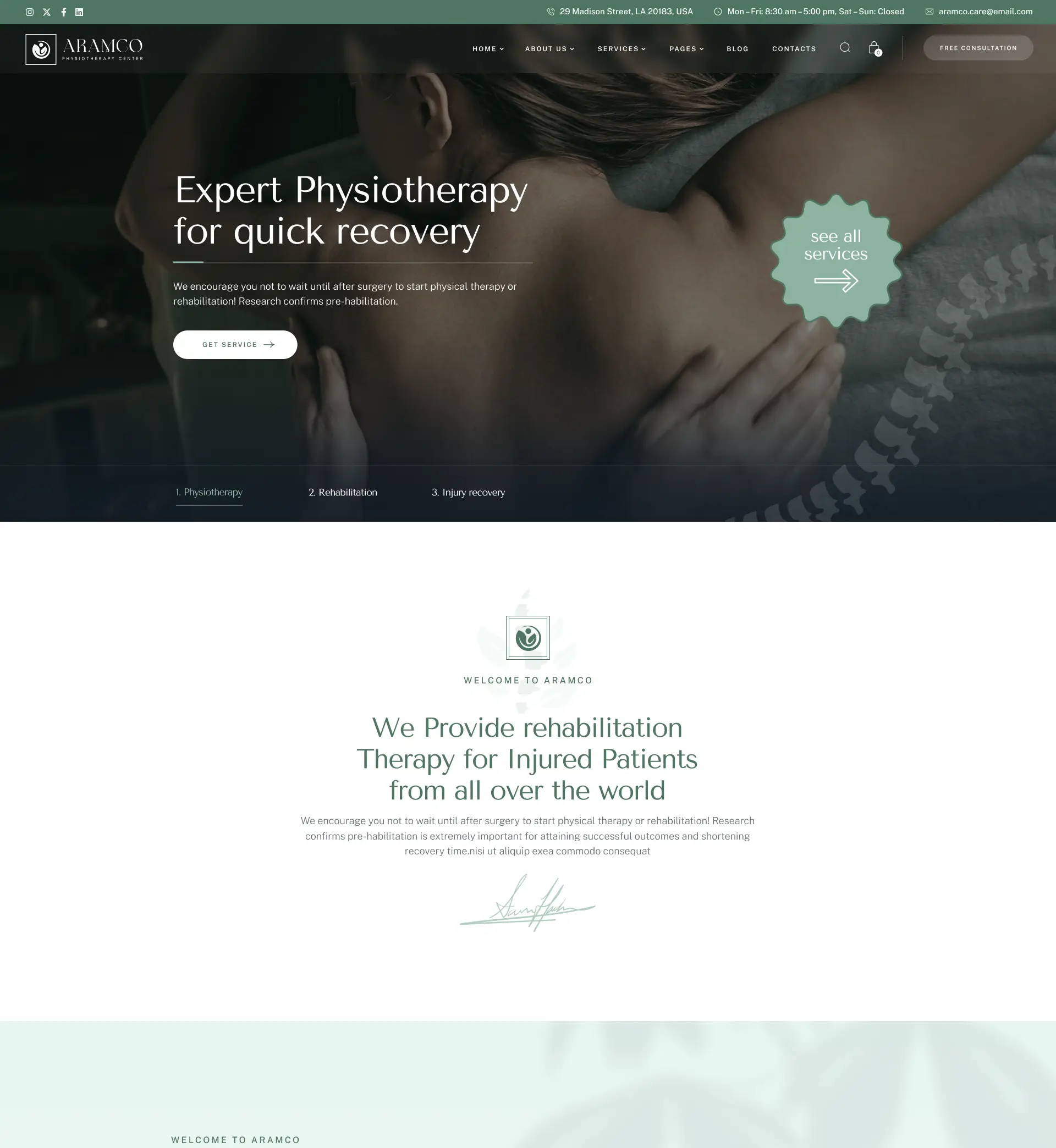 Aramco Physiotherapy & Wellness Elementor WordPress Theme